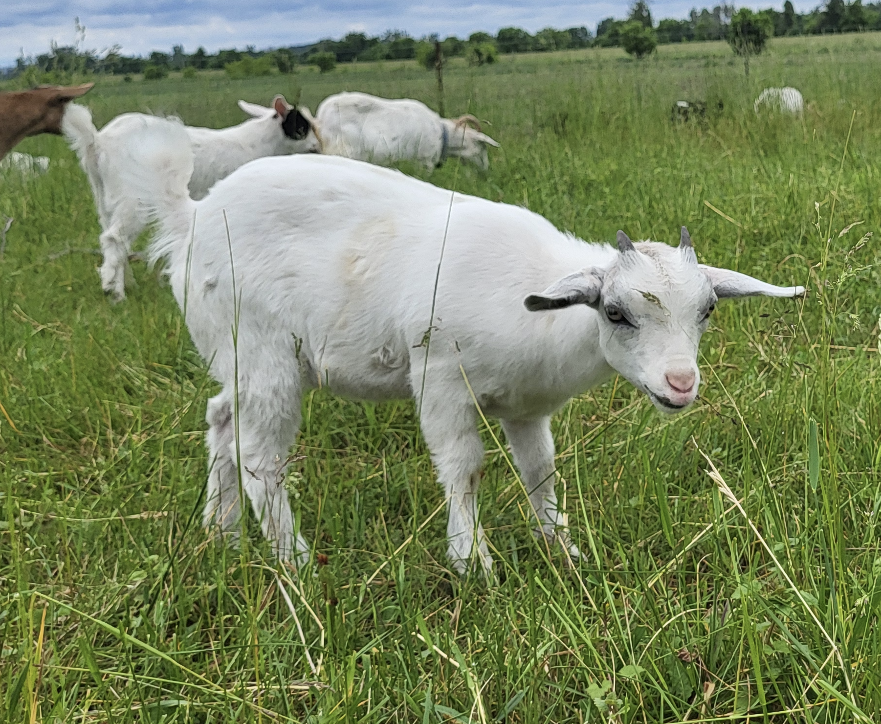 These little ones were born early April 2024 so we usually keep mom and babies together until the little ones are at least 3 to 3 1/2 months of age. This of course depends on how the weaning process goes. The tentative date for their new homes would be July.